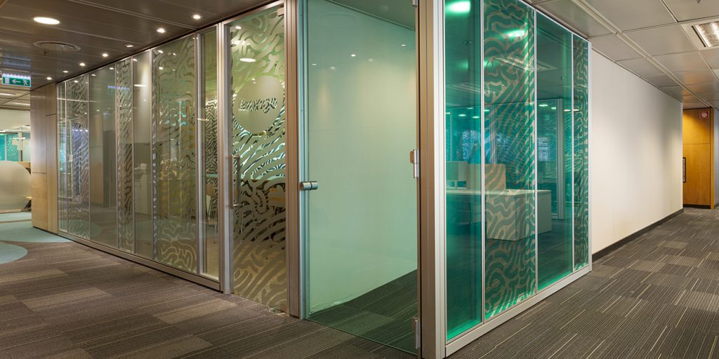 Un edificio de buena calidad espacial y constructiva, fue el marco de este proyecto innovador. Las plantas, doce en total todas de una escala significativa, gran extensión y considerable densidad de ocupación. Por ello se requirió de la elaboración de un proyecto de identidad y carácter para cada piso en conjunto con el desarrollo de una imagen corporativa singular. El lay out posee una disposición similar en cada piso. Por ello se opto por trabajar con texturas y colores especiales y únicas para cada uno. Se aplicaron en los elementos arquitectónicos y la imagen gráfica para así hacer reconocibles los diferentes niveles.