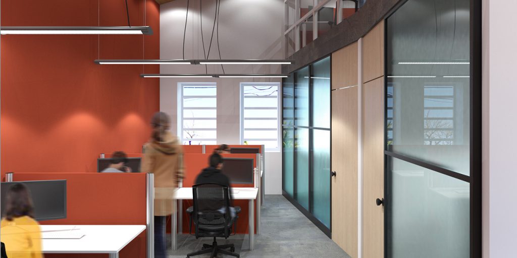 El cliente, una Pyme dedicada al desarrollo de sofware nos solicito un proyecto que uniera dos oficinas existentes y así lograr una mejor comunicación e integración entre los empleados ubicados separadamente. Dada la existencia de una diferencia significativa de nivel entre ambas, fue un desafío unificar el espacio.